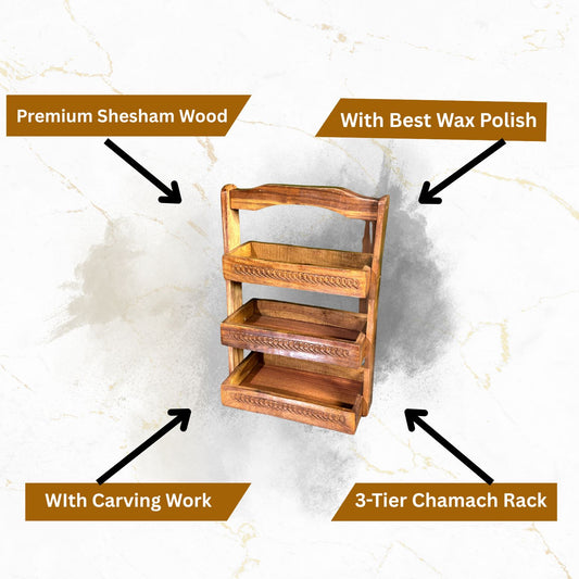 Wooden Spoon Stand | 3-Tier Chamach Rack | Utensil Organizer