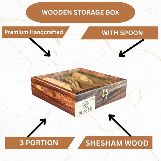 3 Portion Biscuit & Spice Box with Spoon & Non-Breakable Glass Lid
