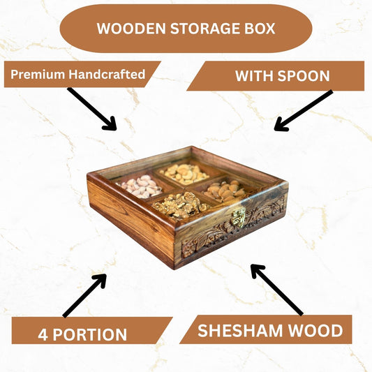 4 Portion Dry Fruit & Spice Box with Spoon & Non-Breakable Glass Lid