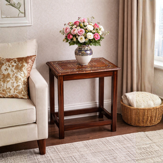 Sheesham Wood Nesting Tables with Brass Work (Set of 4)