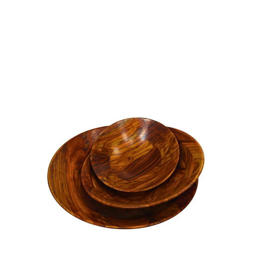 Handmade Wooden Plate – Tukri Design | Sheesham Wood | 12”, 10”, 8”
