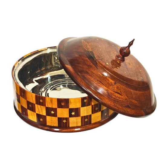 Handcrafted Wooden Hotpot – Octagon Shape with Intricate Hand-Carved Detailing (12x8")