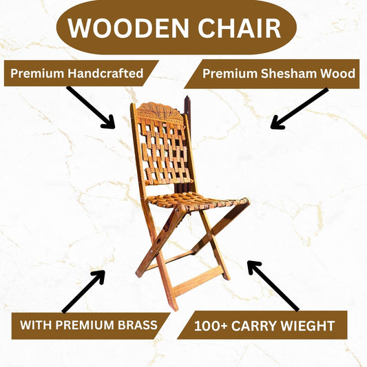 Handcrafted Wooden Chair with Brass Inlay & Intricate Carving – Traditional Artisan Design