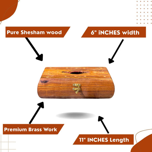 Handcrafted Wooden Tissue Box with Decorative Brass Work