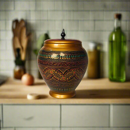 Wooden Handmaded Candy Jar With Red & Golden Naqshi Art