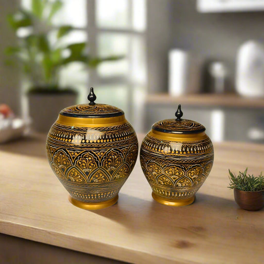 Black & Golden Naqshi Art Candy Jar