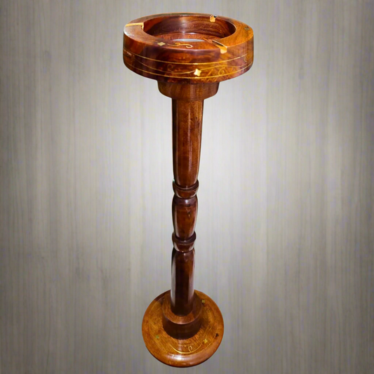 Wooden Ashtray With Stand (20" Height ) In Brass Work