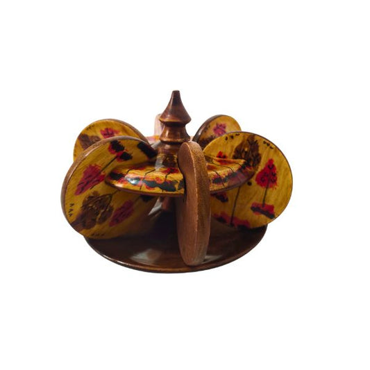 Handcrafted Wooden Dustbin in Tukri Style – Natural Sheesham Wood with Handcarved Detailing | 11” Height