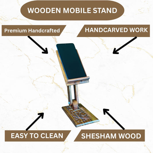 Handcrafted Sheesham Wood Mobile Stand – Elegant Handcarved Design for Desk & Home