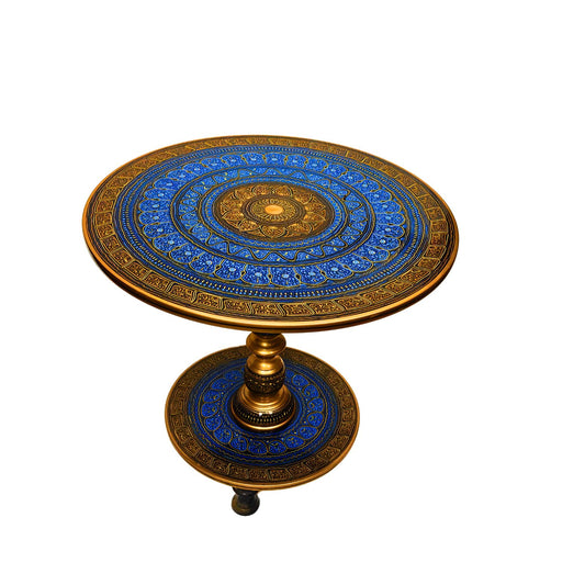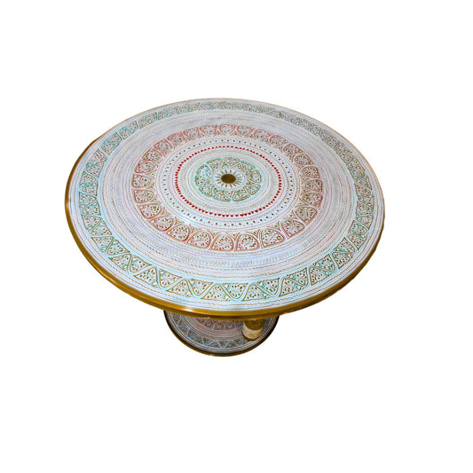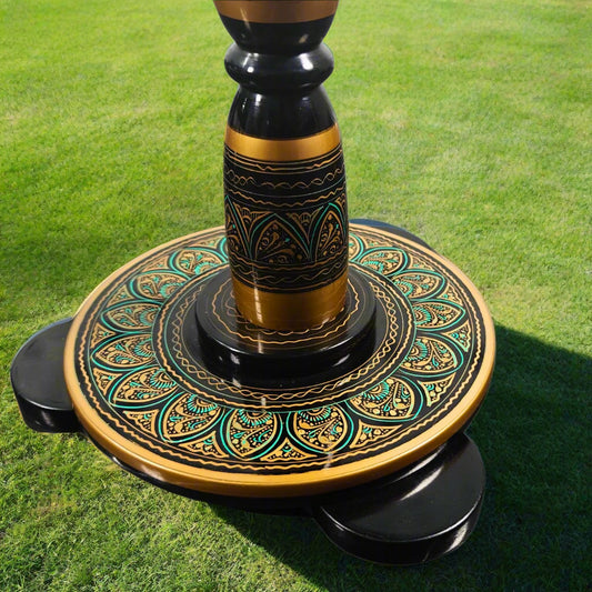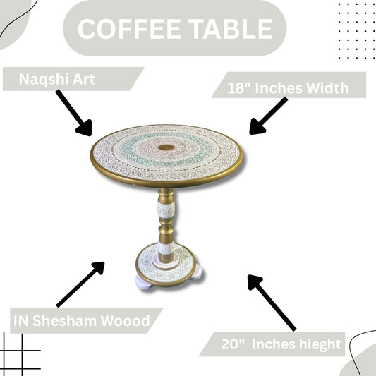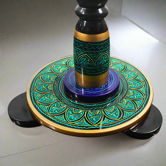 Green & Gold Art Coffee Table – 18" Round Handcrafted Table | Royal Lacquer Finish, 20" Height Accent Piece