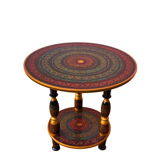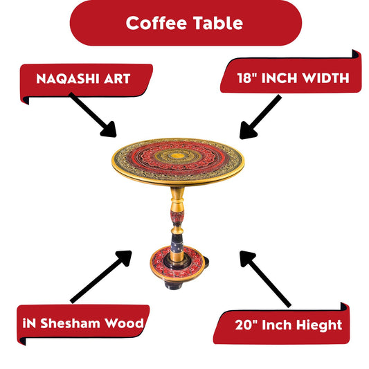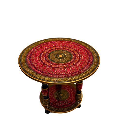 Red & Gold Art Coffee Table – 18" Round Handcrafted Accent Table | Royal Lacquer Finish