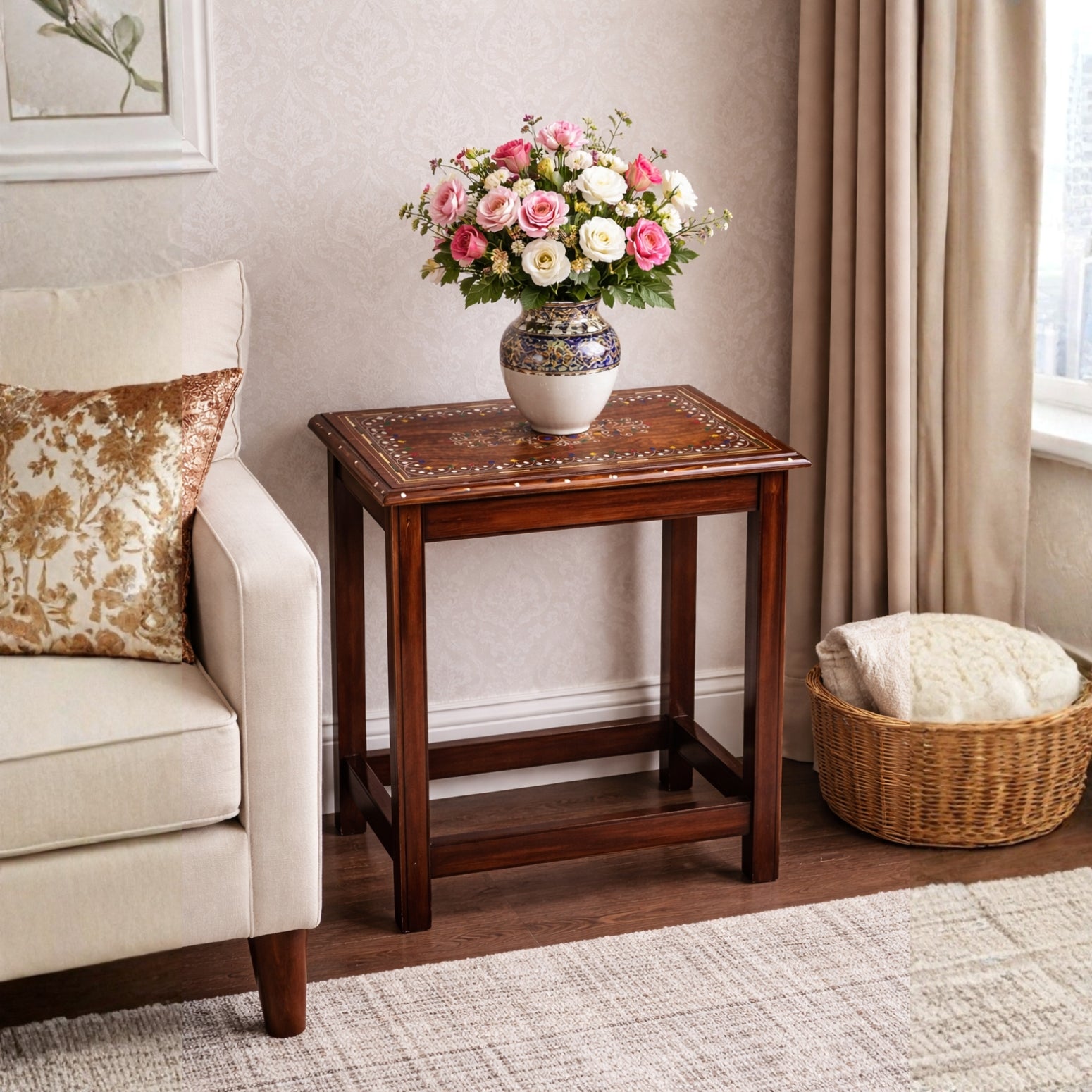 Add elegance and functionality to your living space with this Premium Wooden Nesting Table Set of 4, crafted from high-quality Sheesham wood. Designed with a beautiful white printed finish, these tables blend modern style with timeless wooden charm.